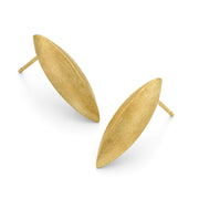 Contemporary sterling silver small Skath stud earrings with 24ct gold vermeil. Unique and easy to wear with a subtle satin finish and highlighted burnished ridge .