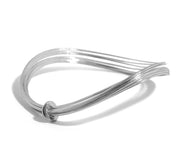 This modern bangle creates the illusion of seven separate bangles while actually being made from a continuous coiled length of beaten silver, making the effect of many fine bangles bound by a silver ring. This hand-forged piece is textured with a shiny hammered finish on one side and a soft satin finish on the other.