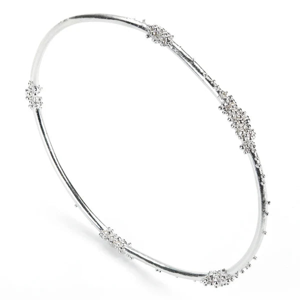 This delicate silver bangle is embellished with beautiful clusters of fine granulation. Available in three sizes.