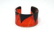 The inspiration for this cuff is Classical Roman motifs and Art Deco designs inspired the leaf arrangement. The stunning single leaf can be seen in exquisite detail. The skeleton leaf is used as a stencil to create the design and to emboss the surface when it is heated to apply the dye. so the wearer can observe the leaf in all its glory. This cuff is a strong graphic design that looks really striking when worn.