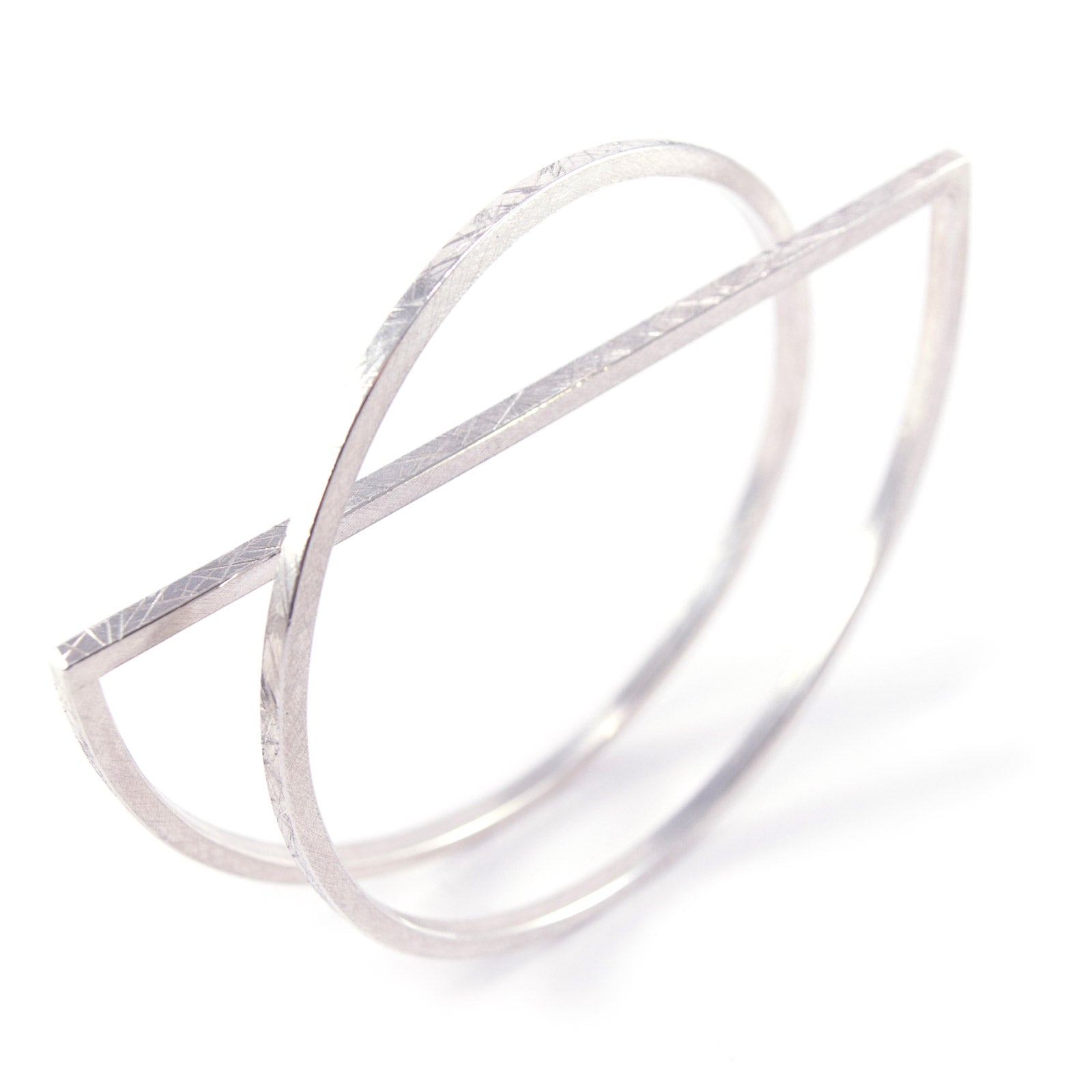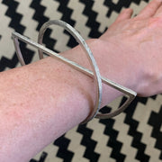 Minimal design with clean eye-catching lines and curves. The Rockabye bangle nestles comfortably on the wrist while its geometric shape is eye-catching. Easily worn all day or pop it for a little something extra in the evening.