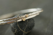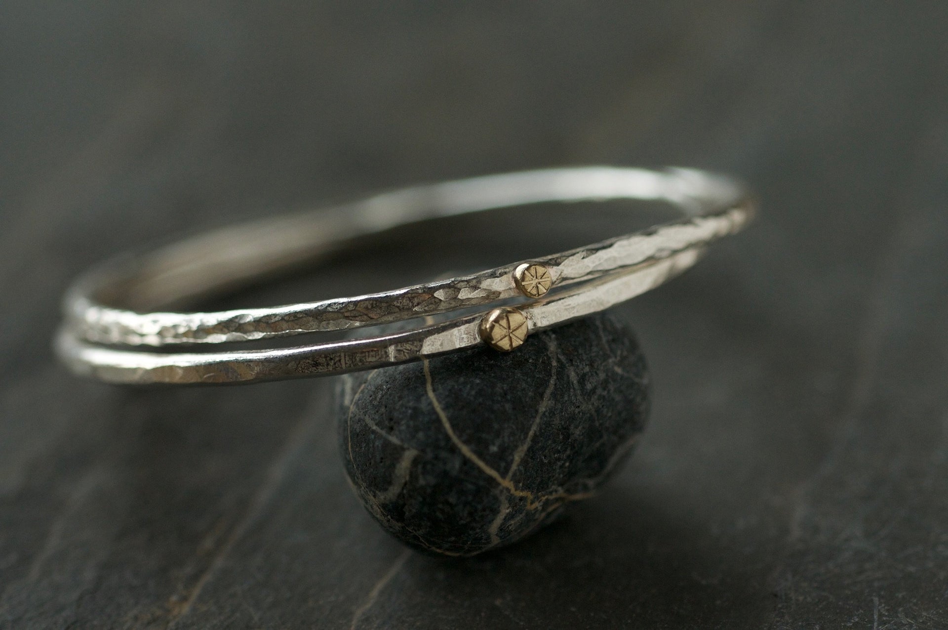 Each bangle is textured with Lucy's own Granddad’s old workshop hammers. The gold stars are formed from gold dust left over in the workshop, melted down and carved with a small star.