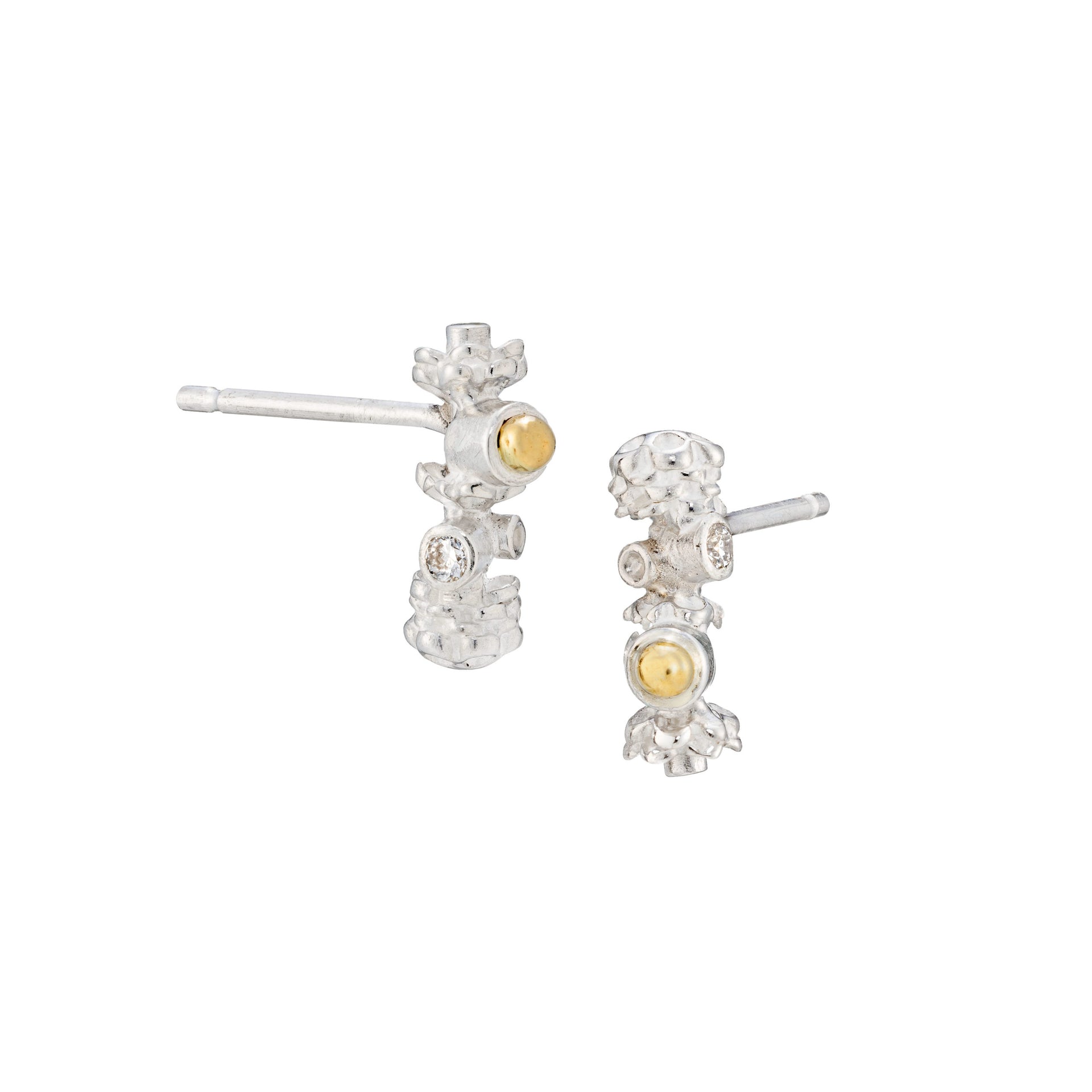 Beautifully textured catkin stud earrings. The texture is highlighted by a gold granule and sparkling diamonds which are uniquely set to the side of the earring. Just perfect.