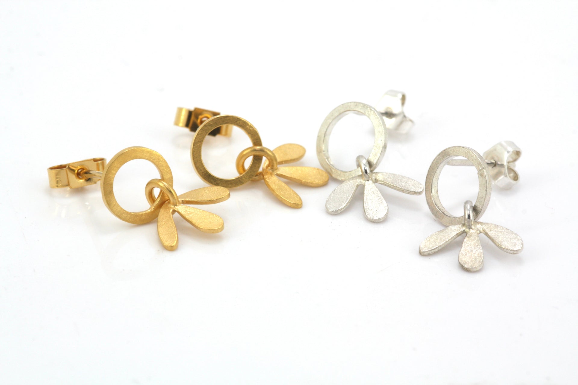 Lovely gold plated silver dangly leaf stud earrings which have been delicately pierced out. The earring is super lightweight and has fantastic movement when worn.