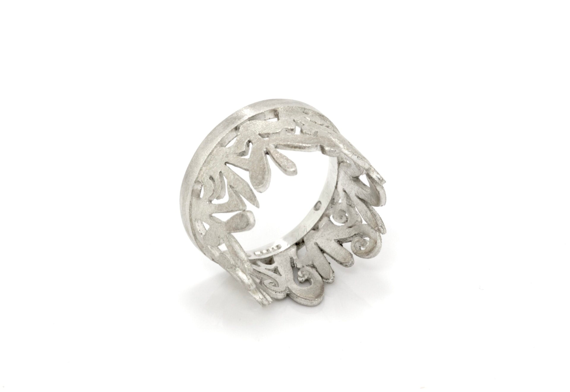 A real statement ring, hand-pierced shapes created in sterling silver. A beautiful and comfortable ring to wear.