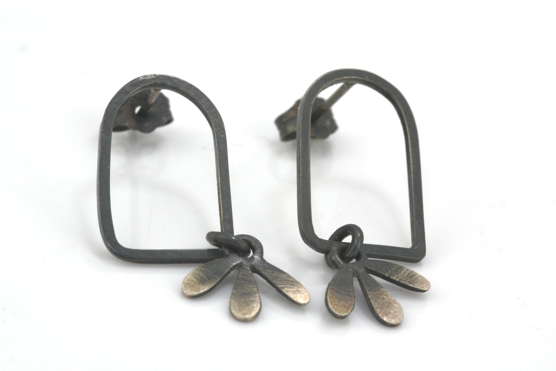 Lovely oxidised silver dangly arch leaf stud earrings with a brushed ombre effect. The earrings are super lightweight and has fantastic movement when worn.