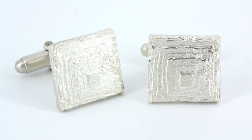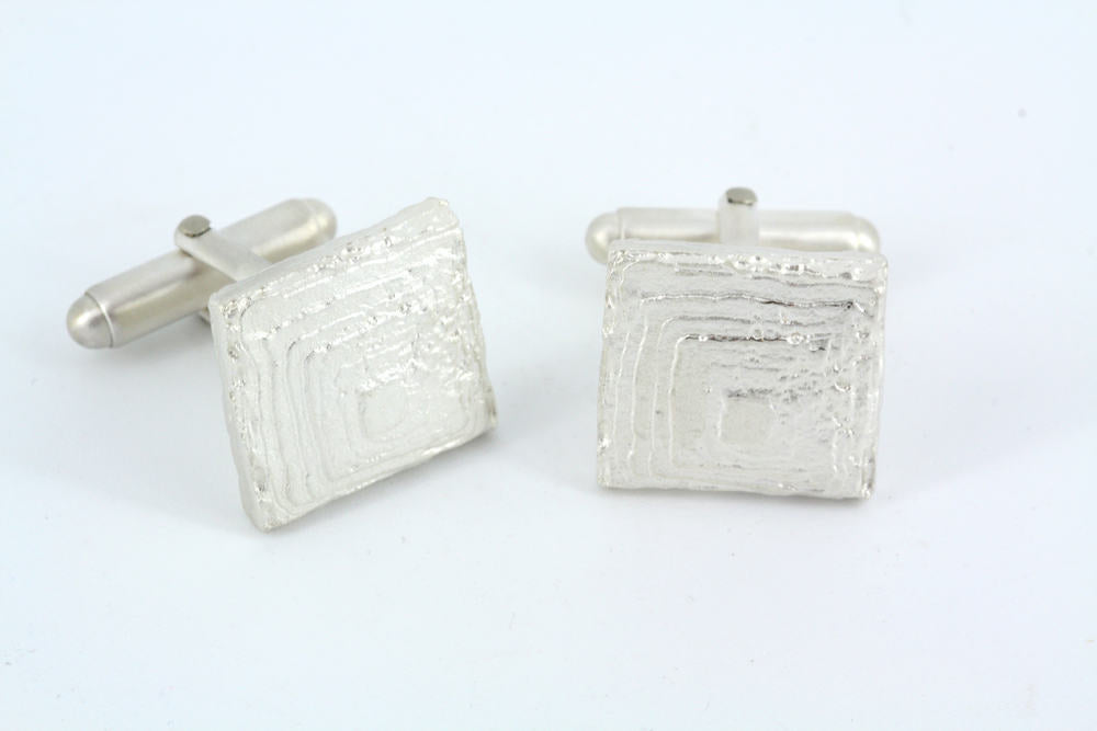 A great pair of chunky cufflinks with an acid-etched textured pattern and a satin pearly finish.
