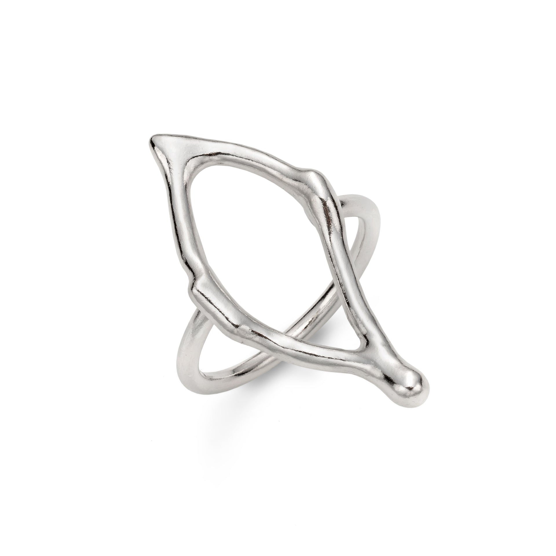 Inspired by the lattice forms in windows and netting, each fragment creates a play of shadow and light on the skin, creating unusual and timeless pieces. This understated open-shaped ring is an elegant and versatile option for everyday wear.