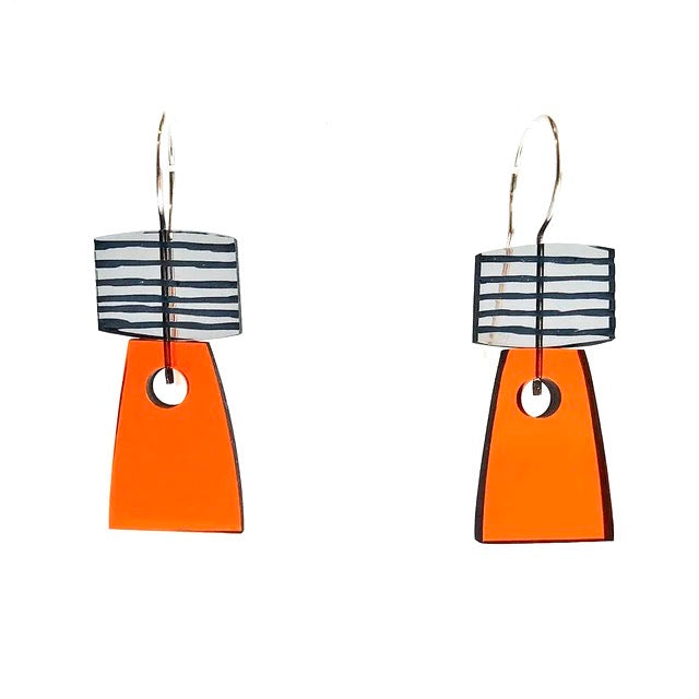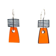 Lovely drop hook earrings in orange and clear acrylic. The dyed black edge plays with the light and creates a bold look from every angle
