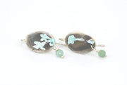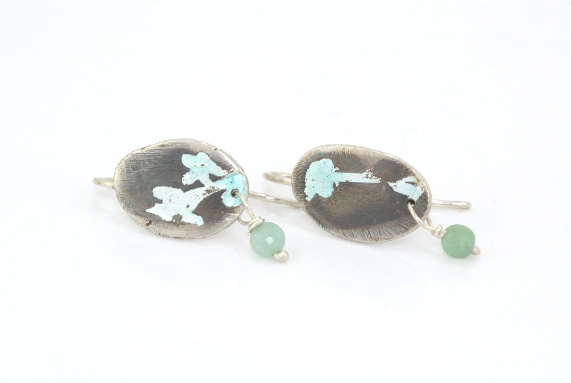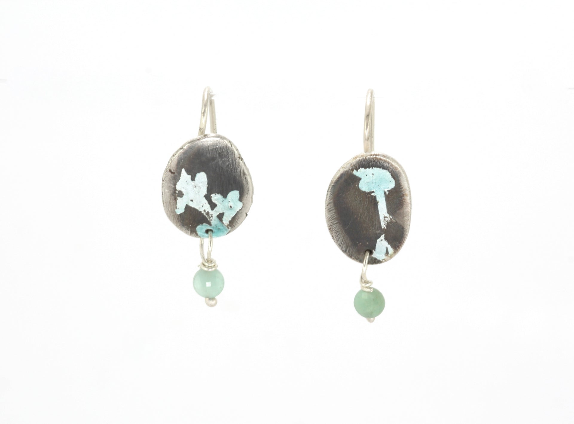 The earrings are beautifully handcrafted with sterling silver and blue vitreous enamel. They are finished with delicate little emerald beads. Lovely earrings which can be worn every day.