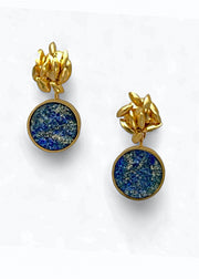 A pair of beautiful gold plated stud earrings, that have a wonderful tactile quality with small seed pods that move slightly when touched. The blue of the lapis contrasts beautifully with the gold creating a luxurious feel.