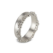 Gorgeous silver ring with little bubbles of silver all-around one edge, reminiscent of days spent rock pooling on the beach.