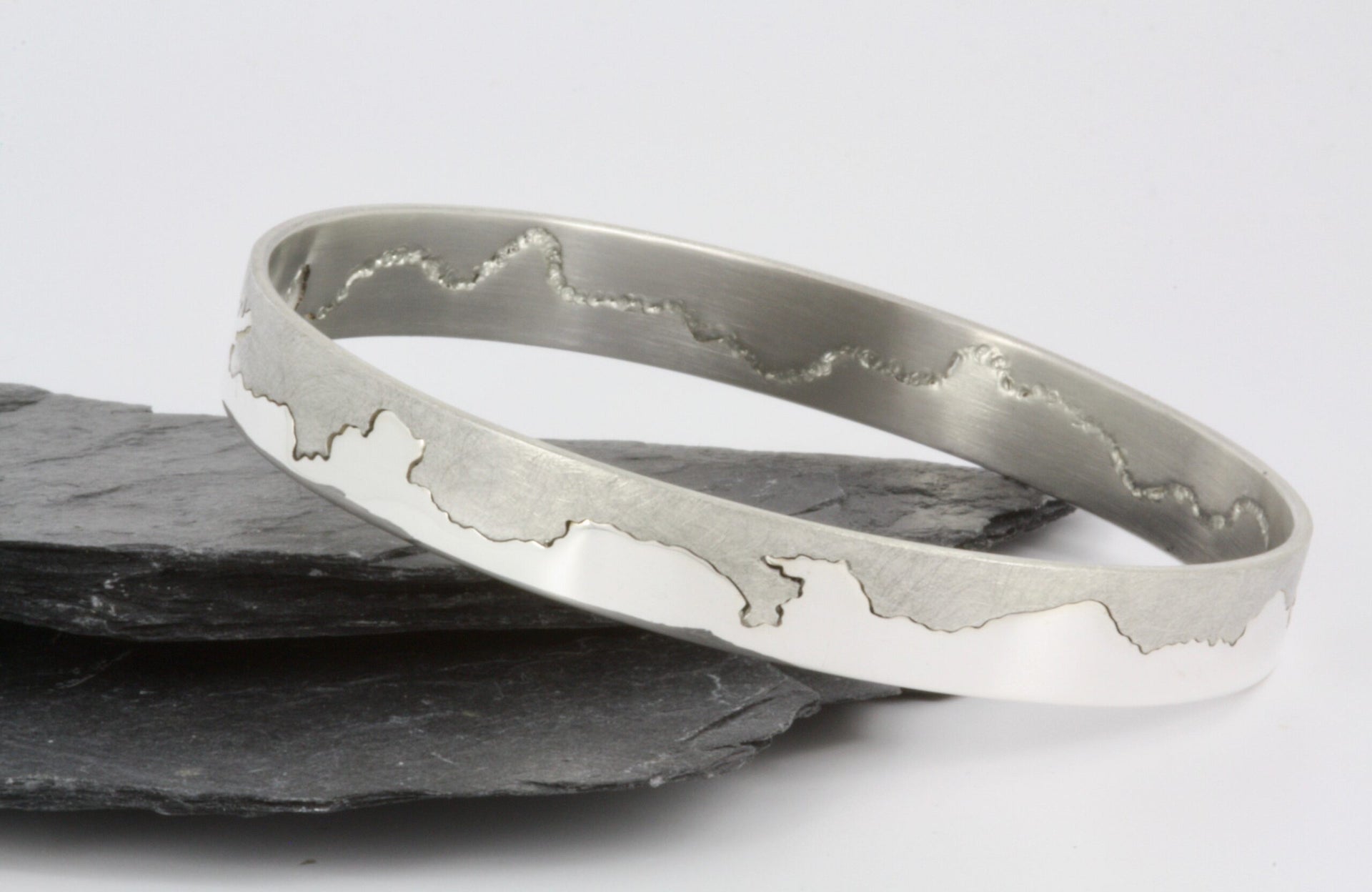 This beautiful bespoke bangle can be customised with your choice of coastline. The one in stock is the coast of Cornwall.