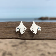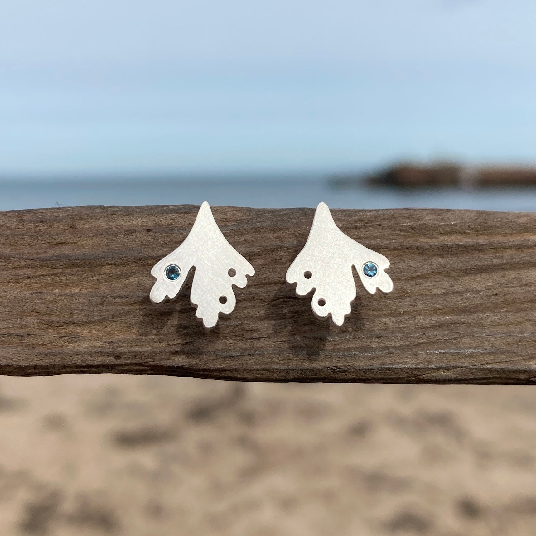 Pretty stud earrings in stylised seaweed shape with faceted London Topaz gemstones.
