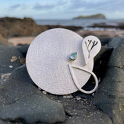 One-off brooch, with seaweed pattern texture and faceted pear-shaped aquamarine.