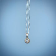 A beautifully simple diamond pendant. A small 5mm nugget of gold set with a VS diamond, subtle, understated, and lovely. On an 18" silver chain.