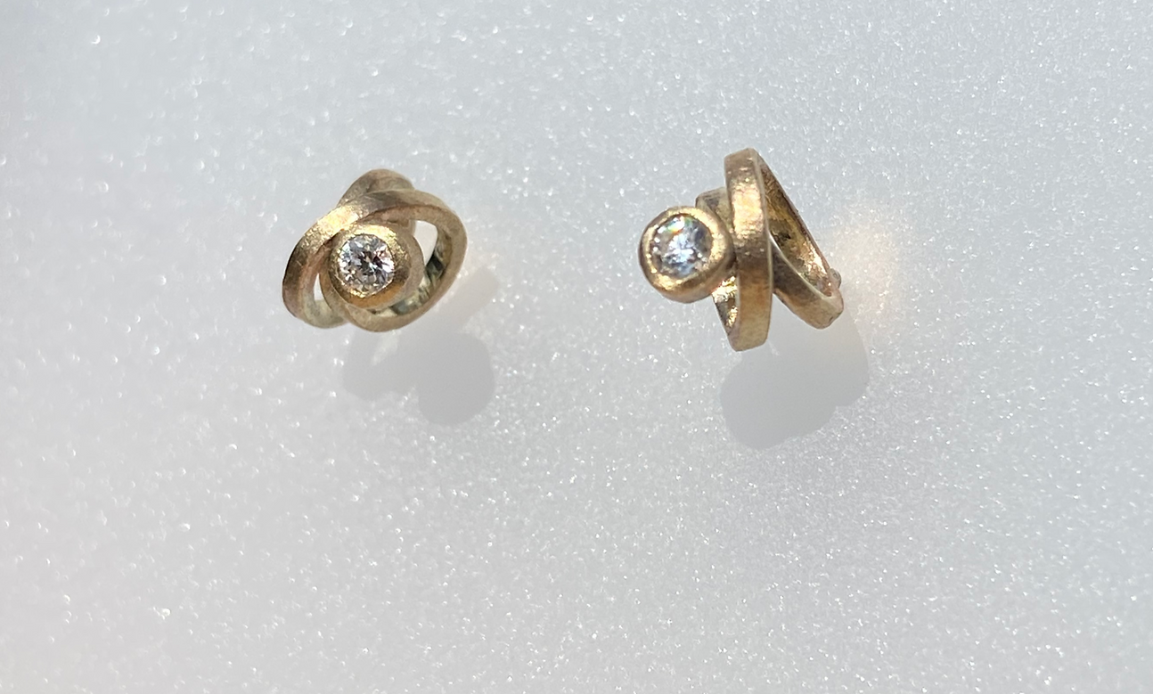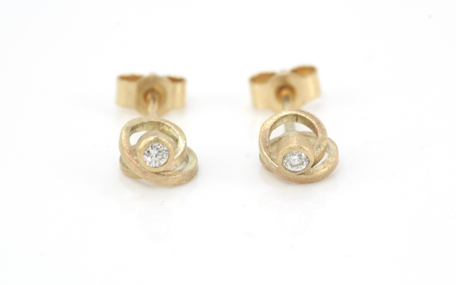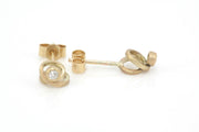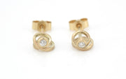 Delicate 9ct yellow gold spiral studs with diamonds for extra luxury. They have a subtle frosted finish for everyday elegance.