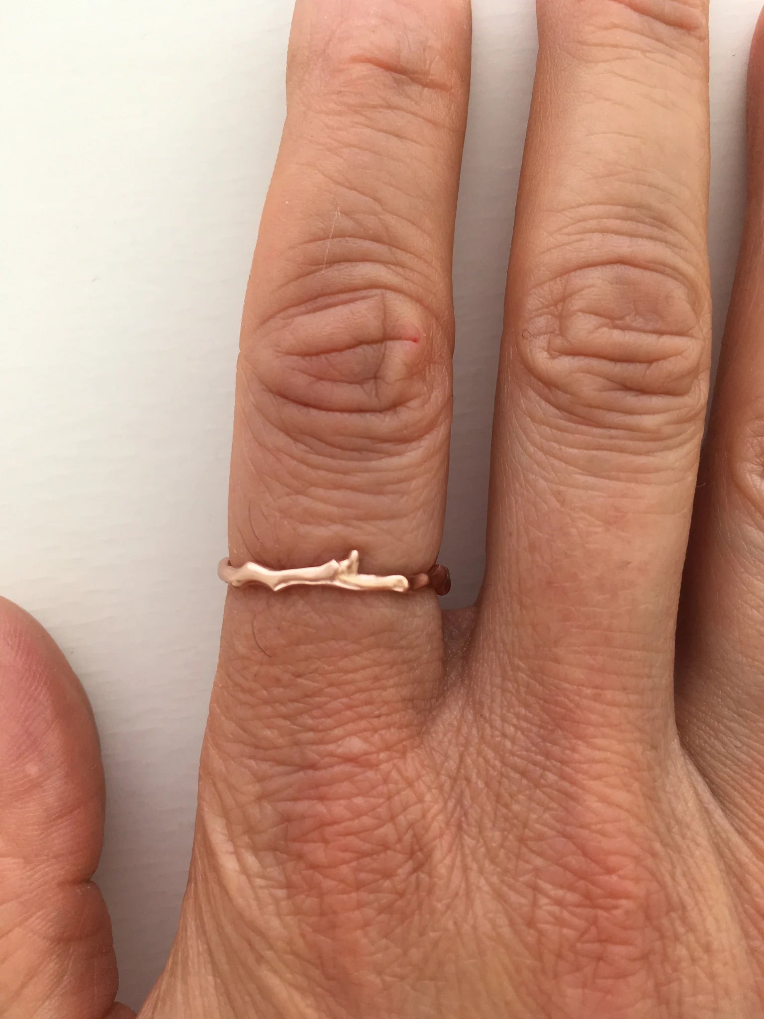 Cast from a real twig, this gold ring makes a beautiful eternity ring, stacking ring, or wedding ring.