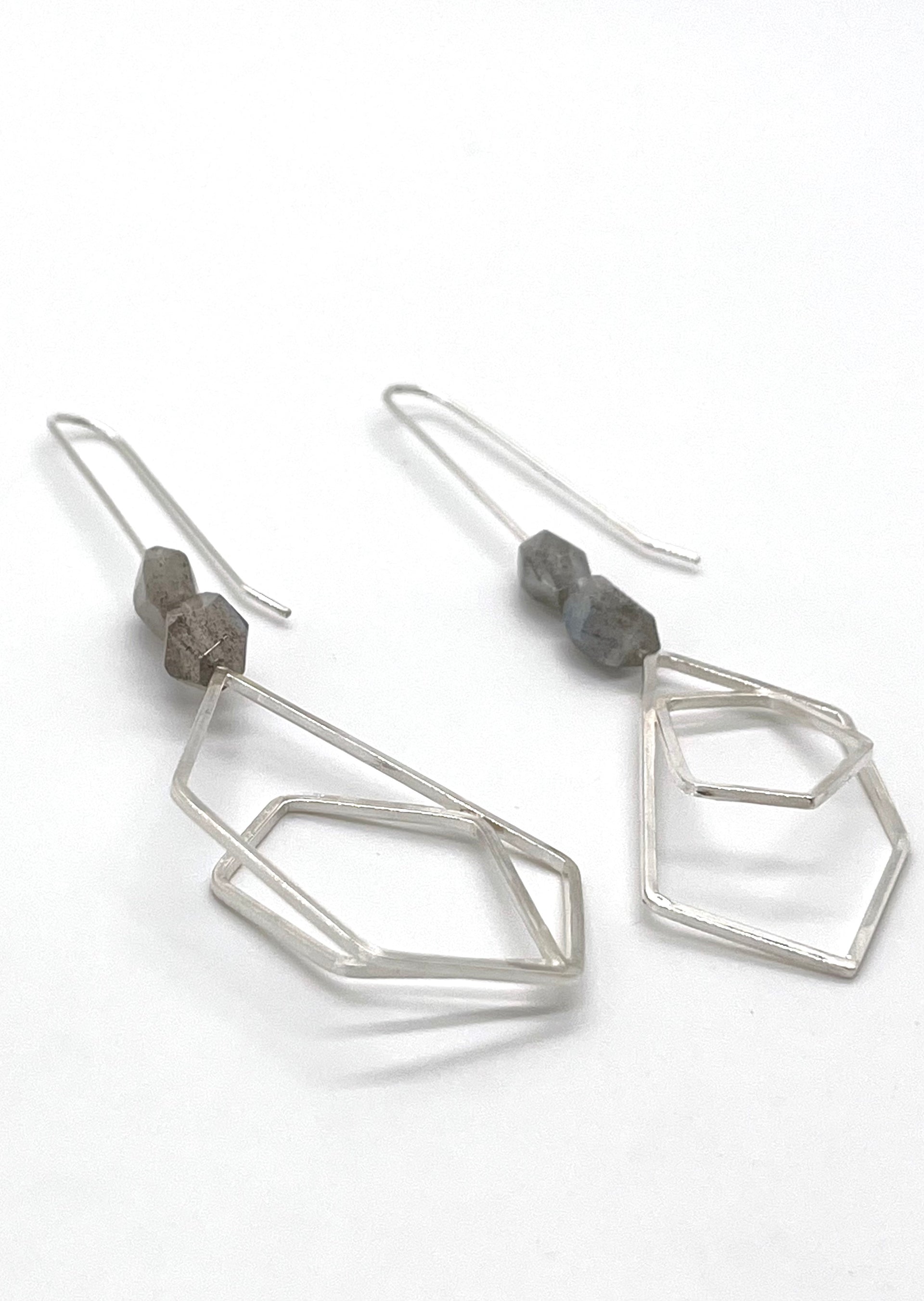 A stunning pair of statement earrings. The mirrored asymmetry gives you a bold yet delicate pair of earrings that can be worn alone to make a statement or paired with Laura's necklaces for a stunning contemporary look.
