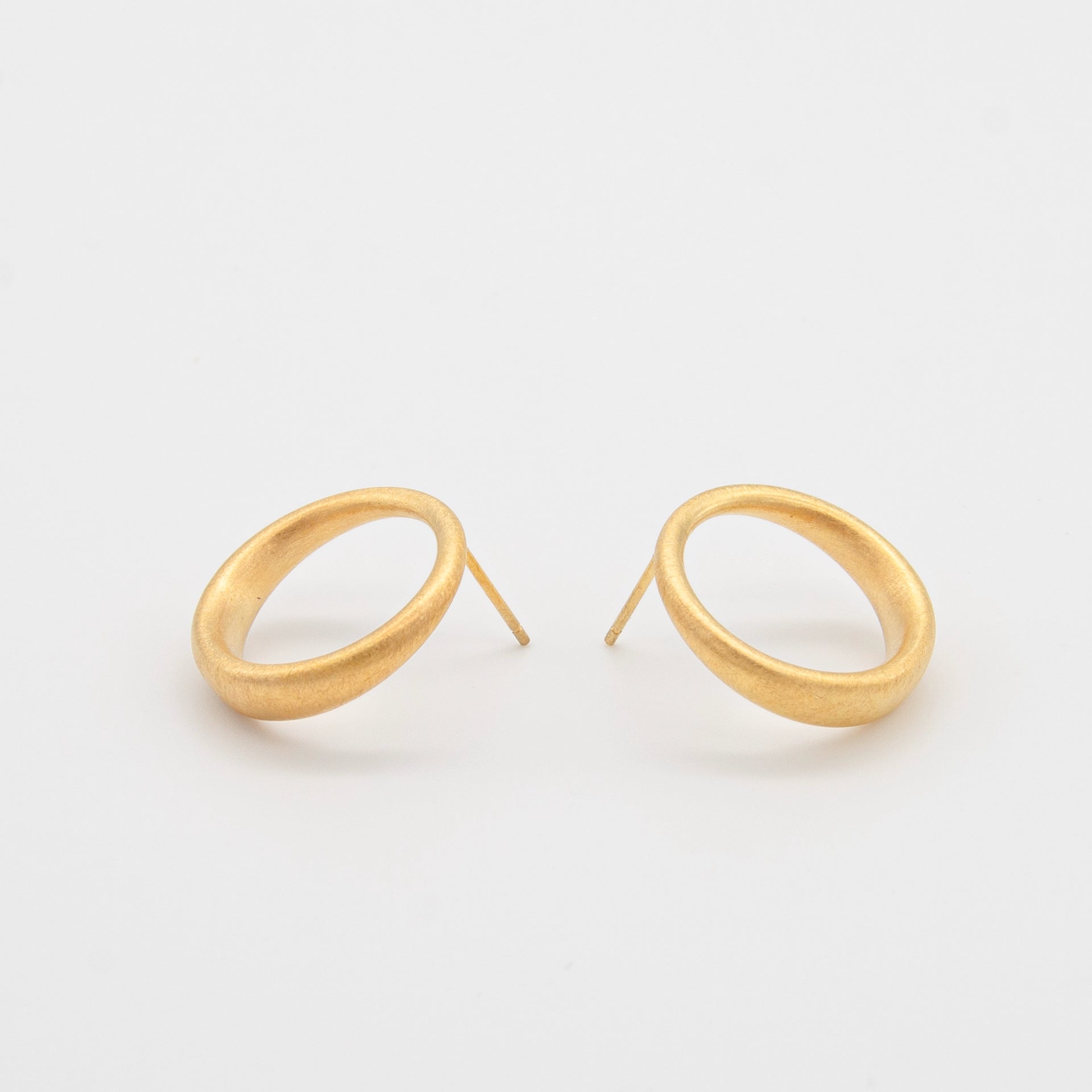 These minimalist circle earrings are inspired from the conversion of large sculptural objects into small wearable jewellery pieces. Hand crafted from sterling silver complete with a subtle satin finish. Perfect to wear day or night.