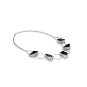Inspired by the beauty of the shapes left behind in ruins eroded by time and weather, forms the Elements Collection. The Elements Multi Necklace is created from Sterling silver complete with five unique element shapes and handmade interconnecting links. Each Elements shape has a satin finish and is oxidised on the inside.