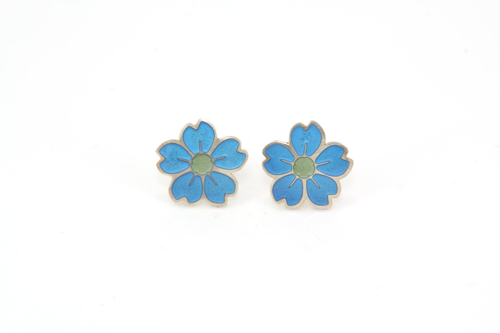 Beautiful enamelled sterling silver stud flower earrings, simple and comfortable to wear every day.