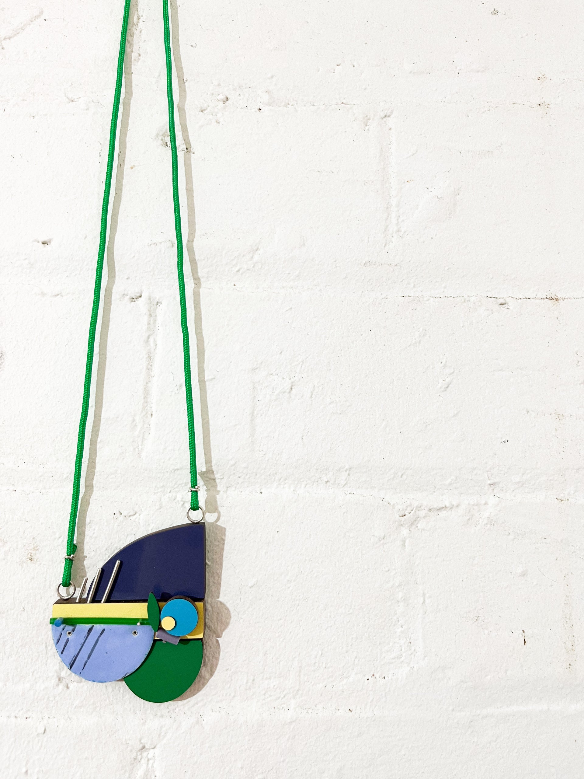 This Full Bloom necklace is a statement piece. It is an assemblage of different materials which work well together to form a three-dimensional piece of jewellery. It is comfortable to wear and is sure to attract attention.