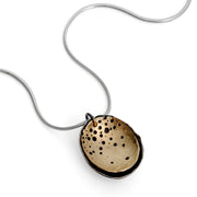 Pretty silver & Solid gold necklace featuring a delicate, hand drilled front 9ct gold layer behind which sits an oxidised silver layer to create visual contrast. with a curved patterned T-bar style catch.