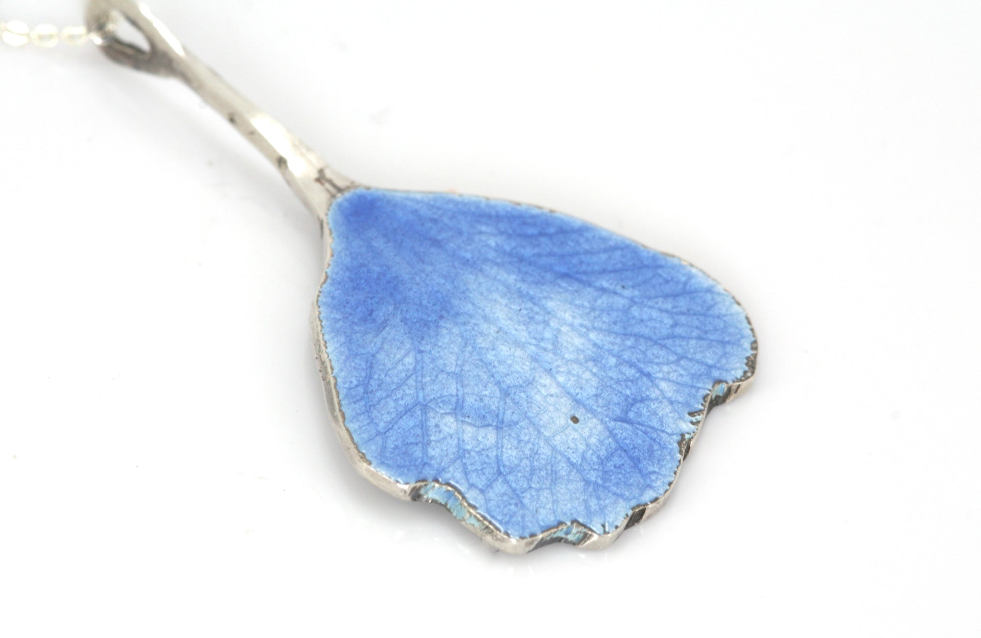 This necklace is beautifully handcrafted with sterling silver and blue vitreous enamel. A delicate little pendant that can be worn every day.