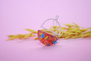 Mini resin and silver divided pendant. A resin half circle with a silver crescent to complete a full circle.
