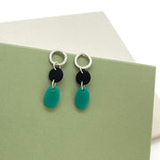 Created from recycled silver and found ocean plastic. Lightweight and easy-to-wear earrings with beautiful movement