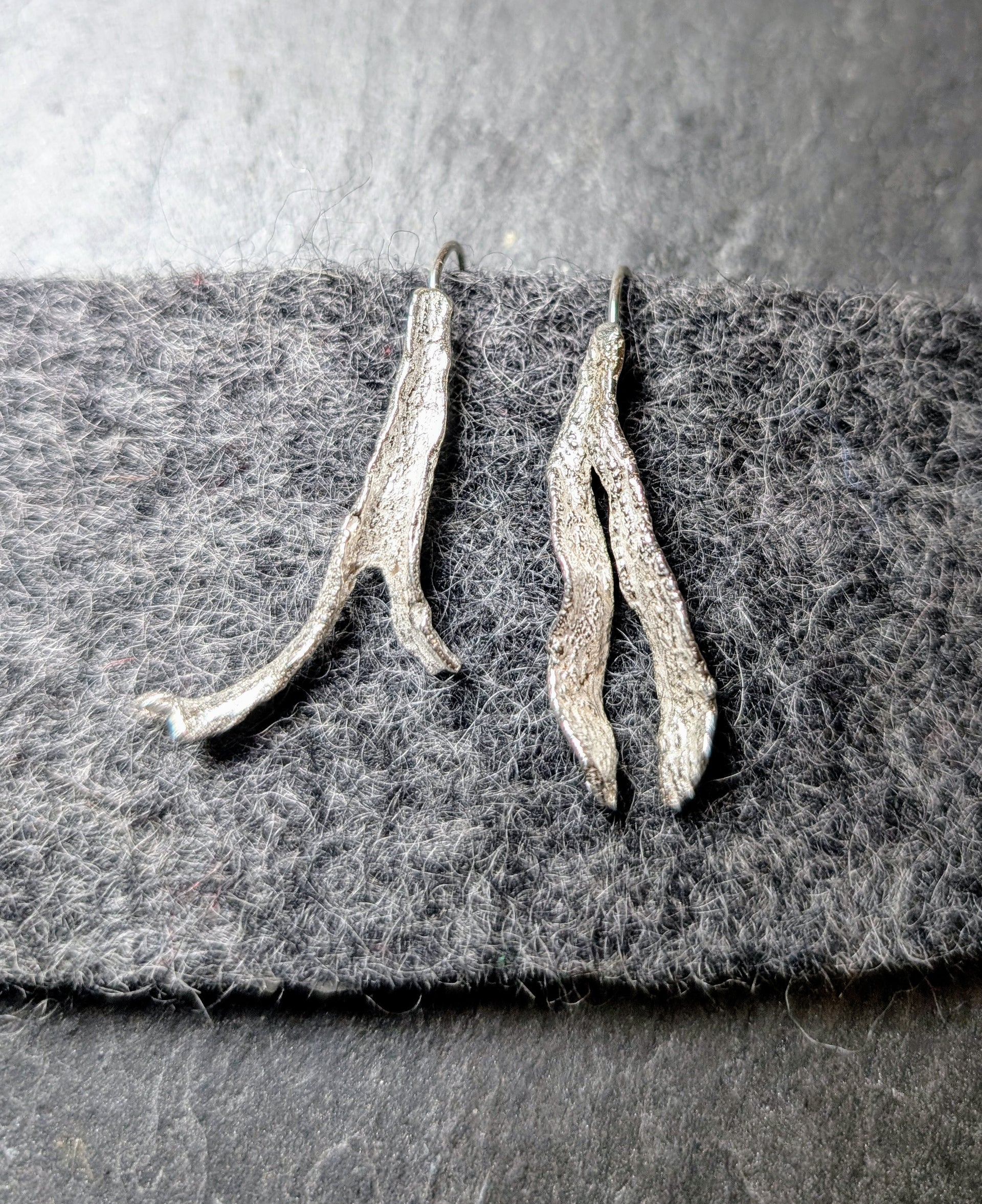 A great pair of mismatch hook earrings cast from seaweed that retains the gorgeous texture of the original pieces collected from Wembury beach.
