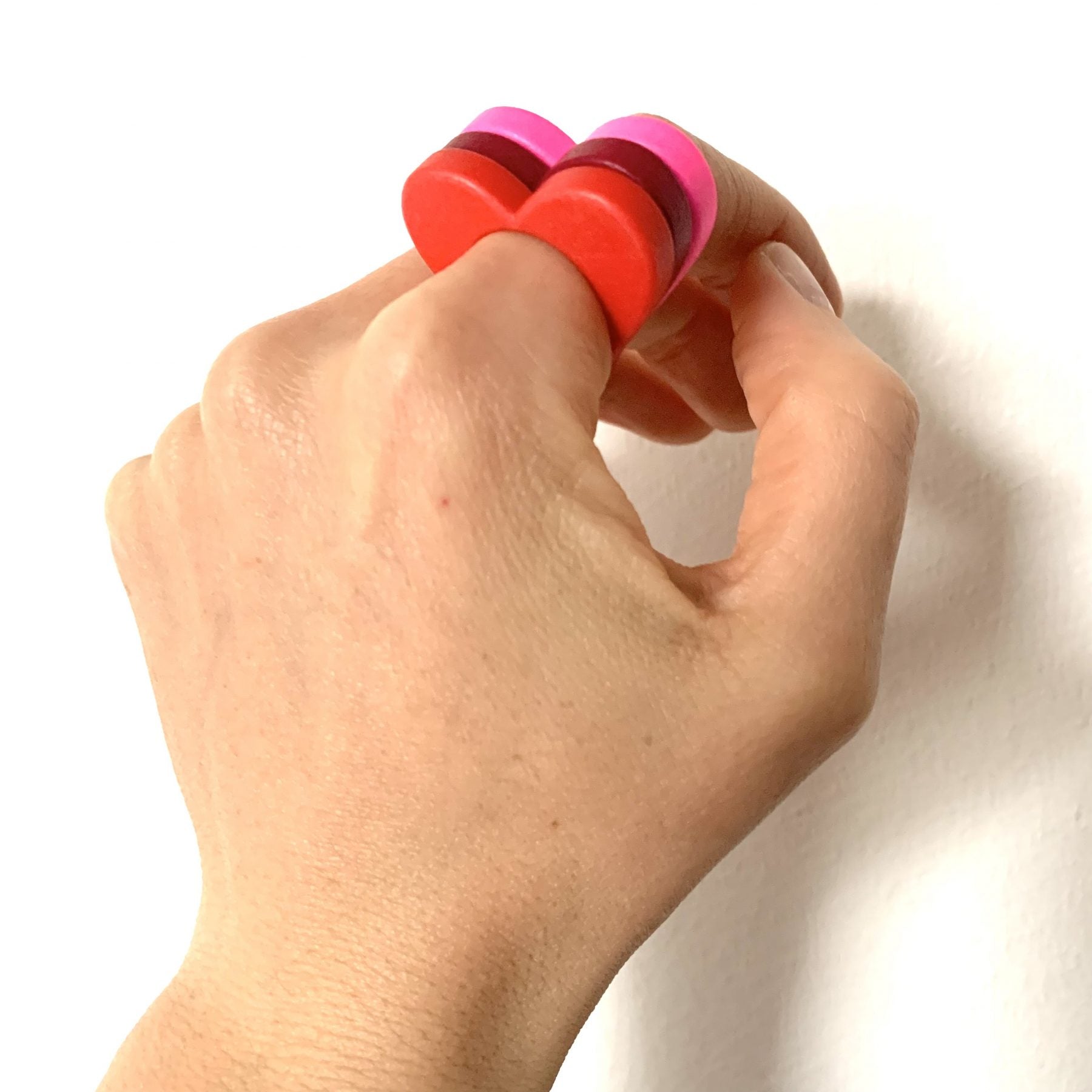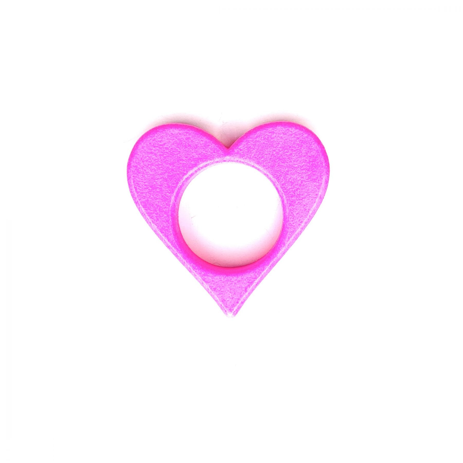 Created in 3D printed nylon and hand-finished to give a smooth tactile surface, this lightweight neon pink heart slice ring can be worn alone or stacked with other colours to suit your outfit or mood.
