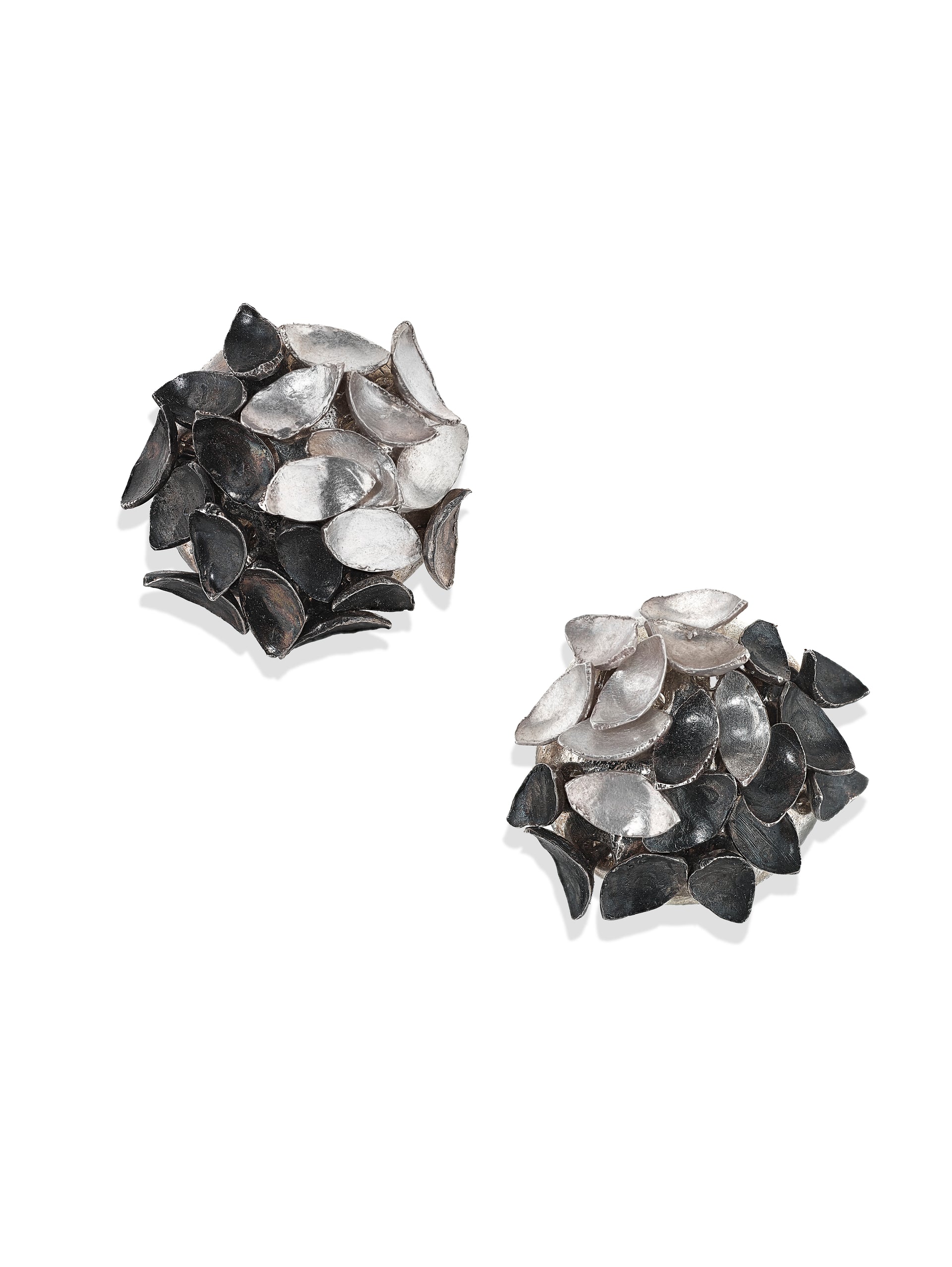 A pair of beautifully kinetic earrings featuring moving leaves in silver and oxidised silver that all flutter and twinkle under a light touch.