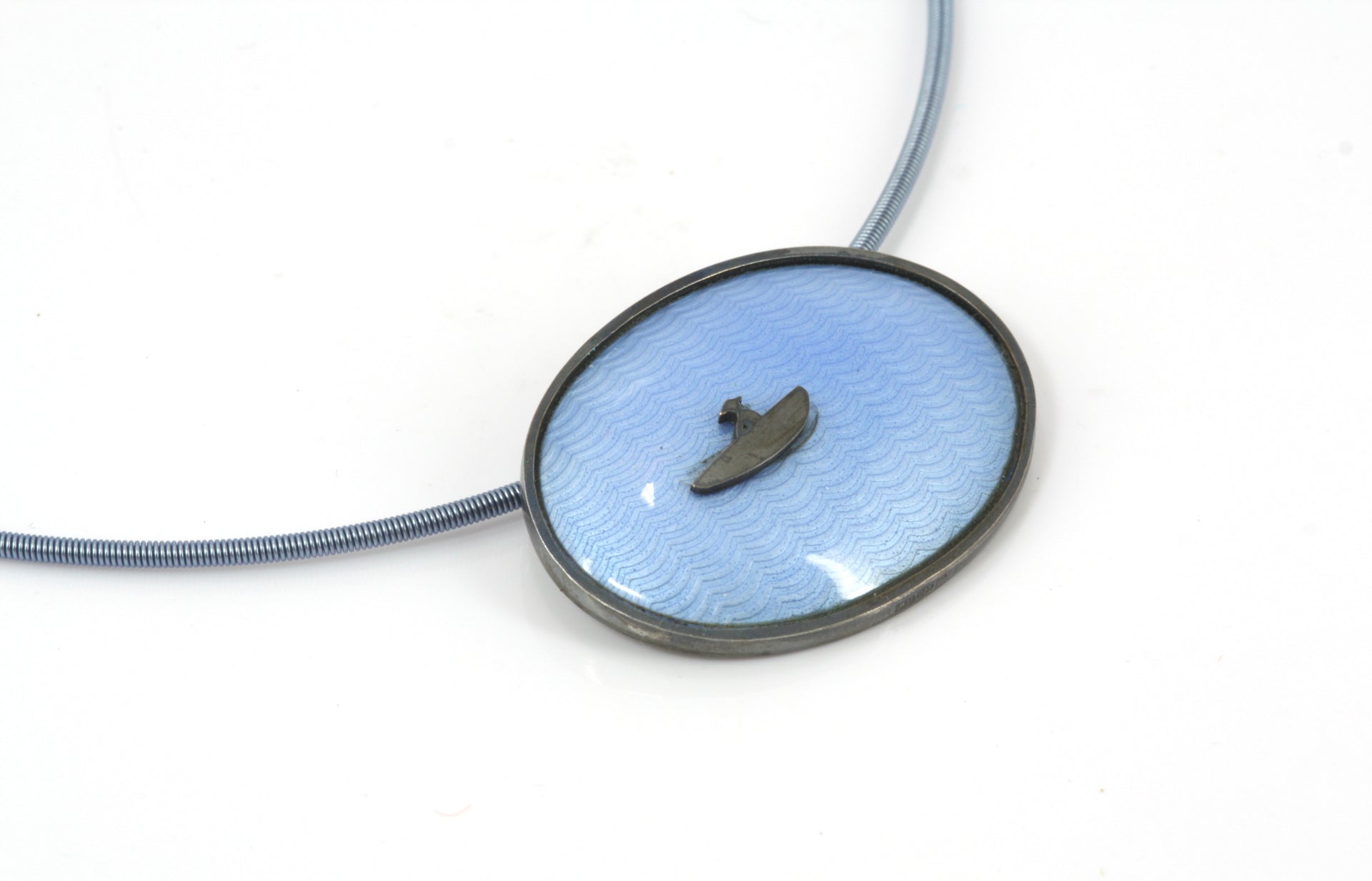 A beautifully enamelled pendant which will stand the test of time. Created in oxidised sterling silver and transparent enamel complete with boatman detail. This pendant would look perfect with any outfit, taking you from day to night.