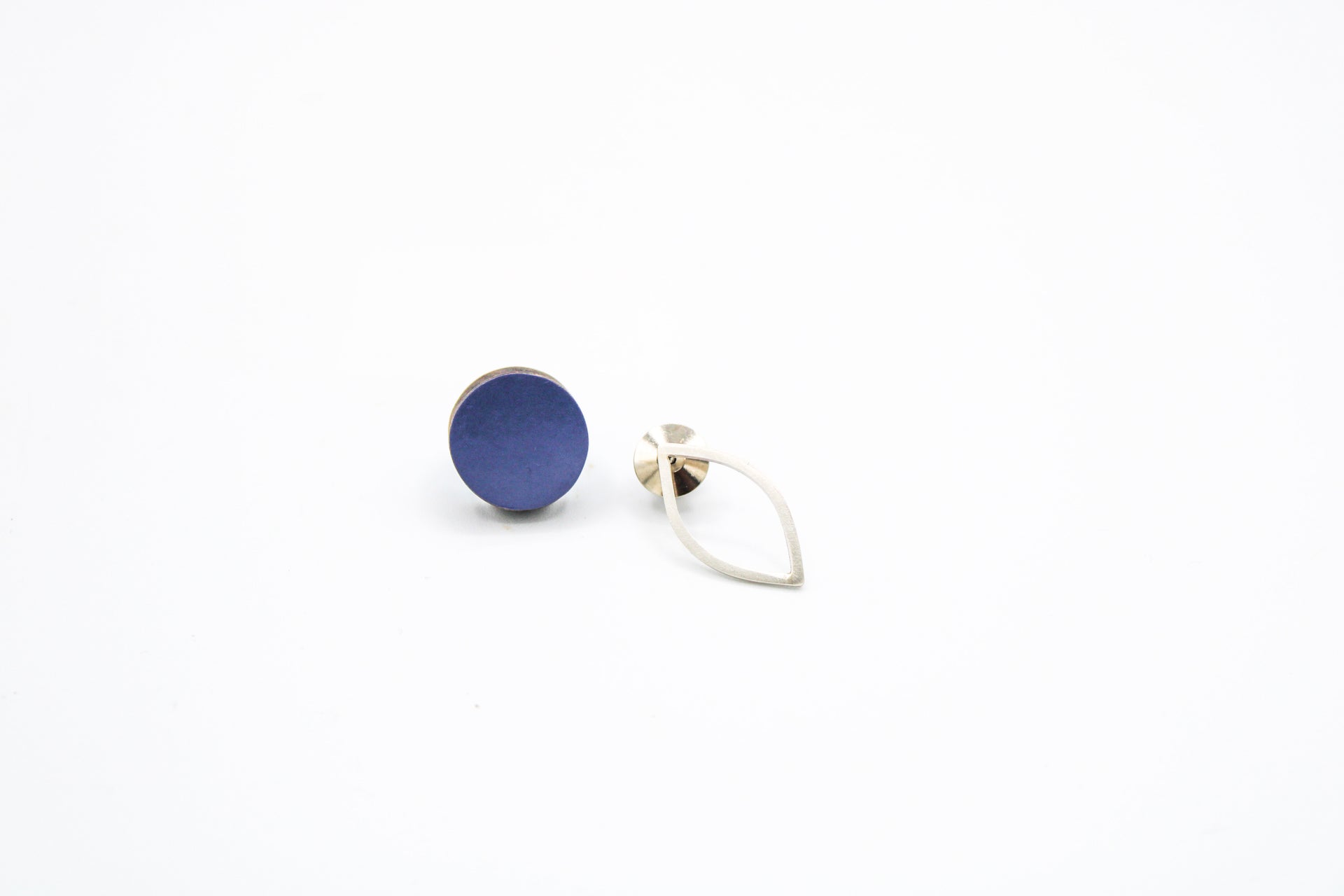 A lovely pair of mismatched brooch pins (sold as a pair) in sterling silver with Formica, and walnut details. These are lightweight but eye-catching with a secure stud-type back and suitable for everyday wear.