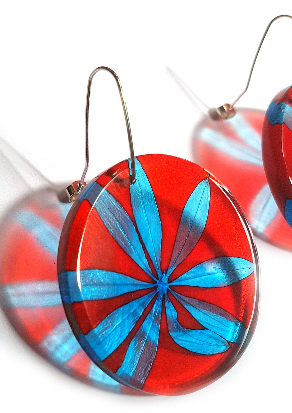 Gorgeous red and turquoise statement earrings made from recycled acrylic (perspex).