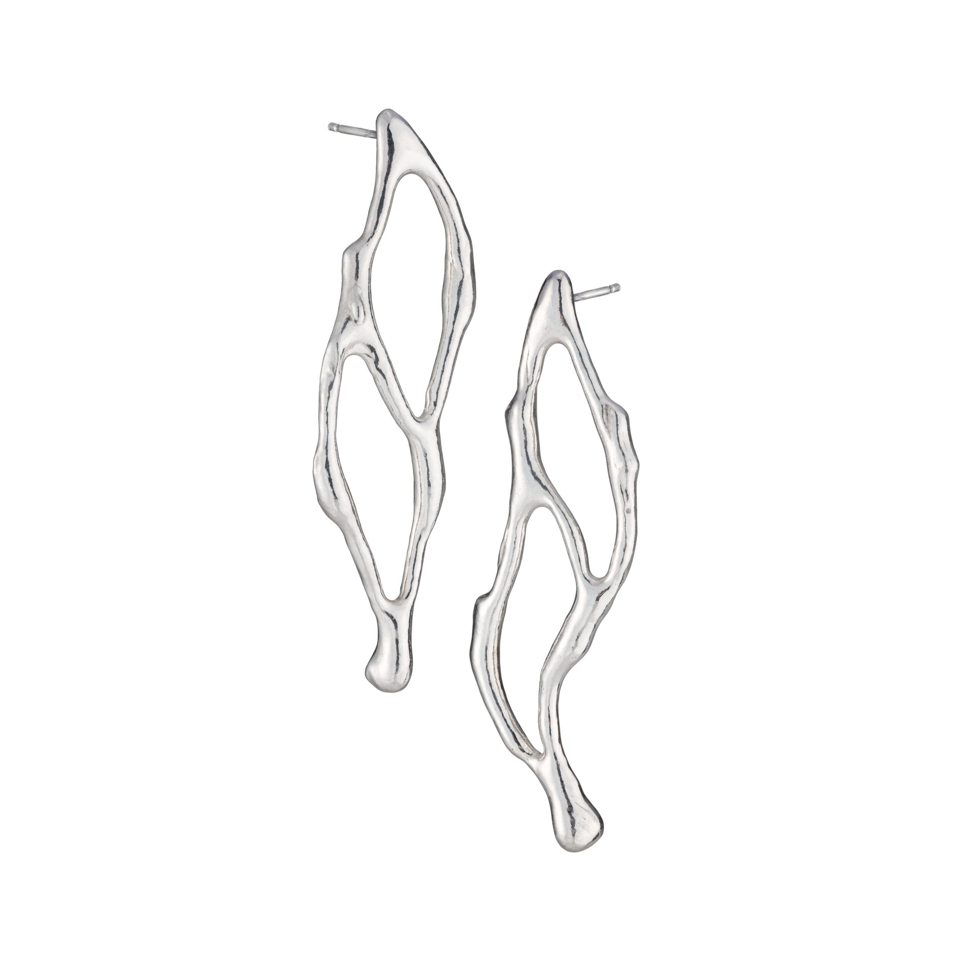 Inspired by the lattice forms in windows and netting, each fragment creates a play of shadow and light on the skin, creating unusual and timeless pieces. These understated stud earrings are an elegant and versatile option to wear from day to night.
