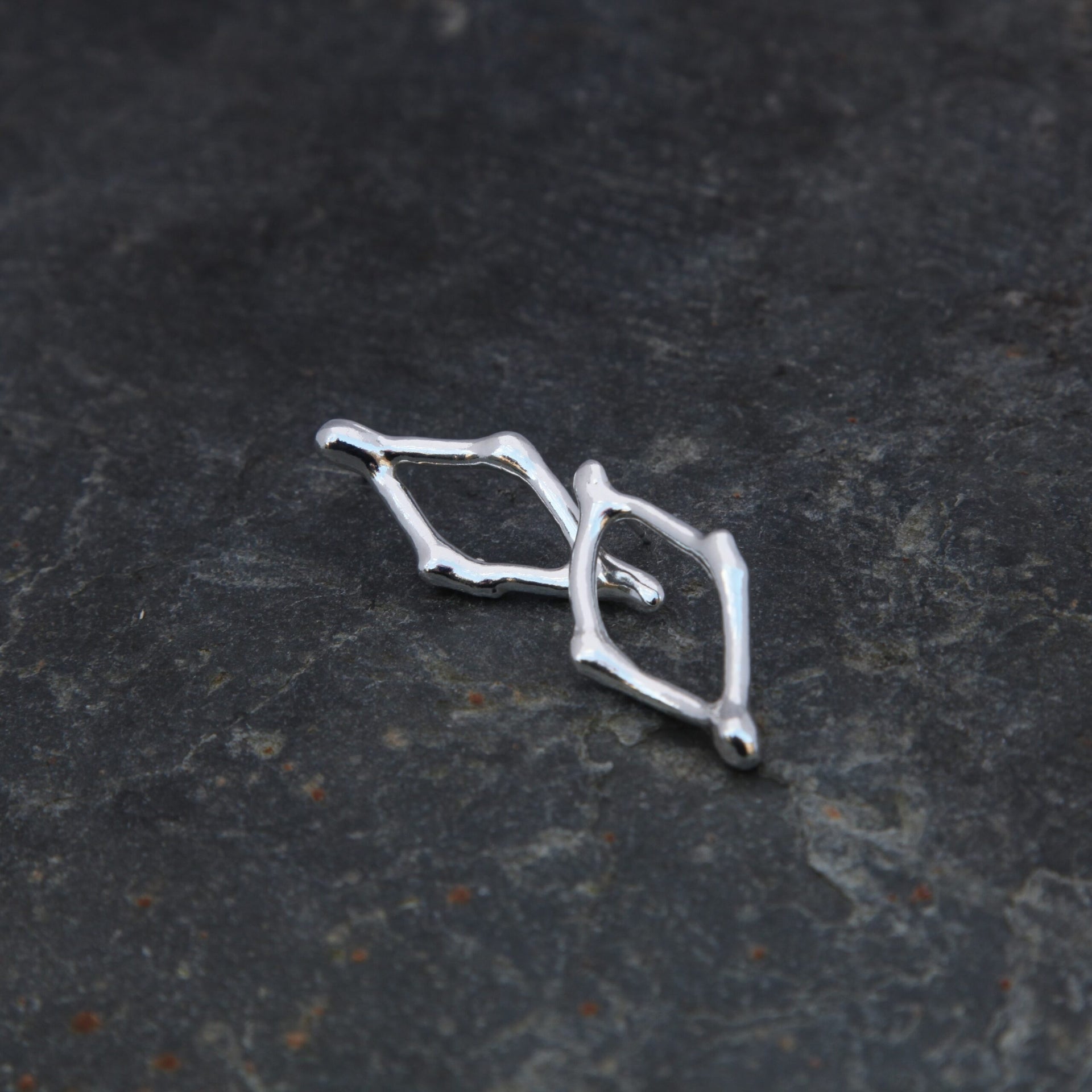 Inspired by the lattice forms in windows and netting, each fragment creates a play of shadow and light on the skin, creating unique timeless pieces. The sterling silver stud earrings are an unusual yet elegant option for everyday wear.