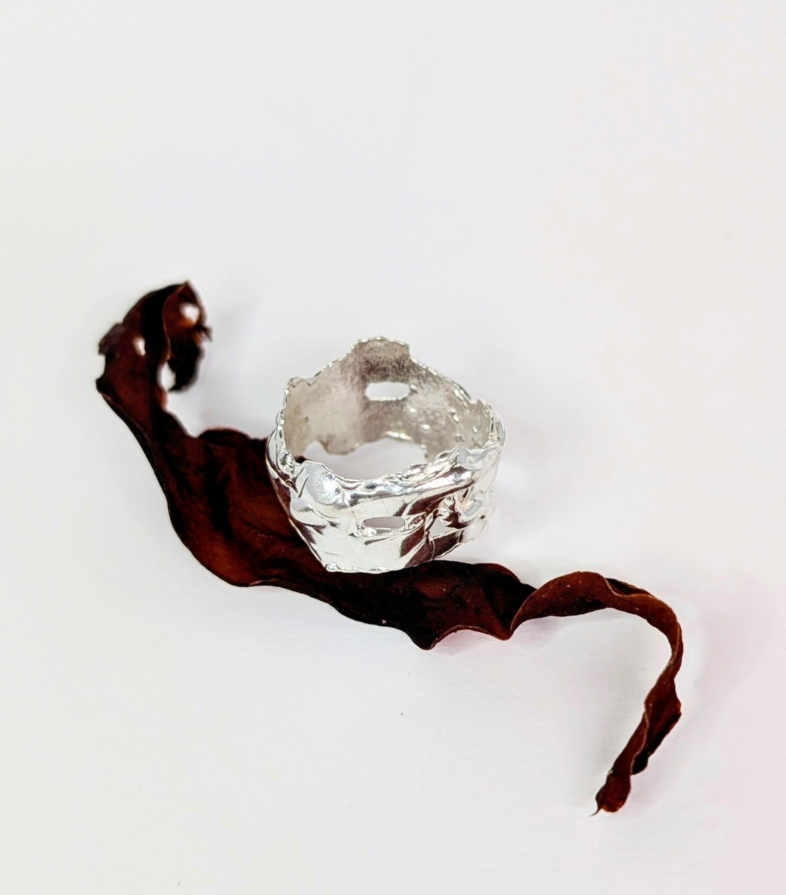 A wonderfully textured ring with a molten splash pattern - suitable for men and women.