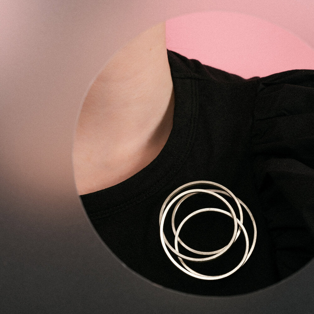 The Vortex Brooch is made of one continuous length of ethical silver which has been textured and spirals round to give the impression of movement. It is a bold and dynamic piece of jewellery.