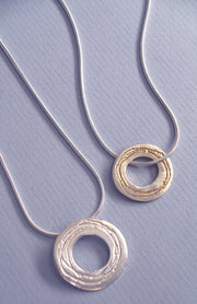 A beautifully sophisticated simple necklace made from silver, etched and gold plated, and finally given a lovely satin finish.