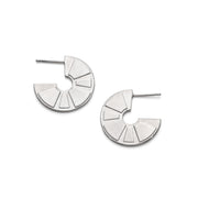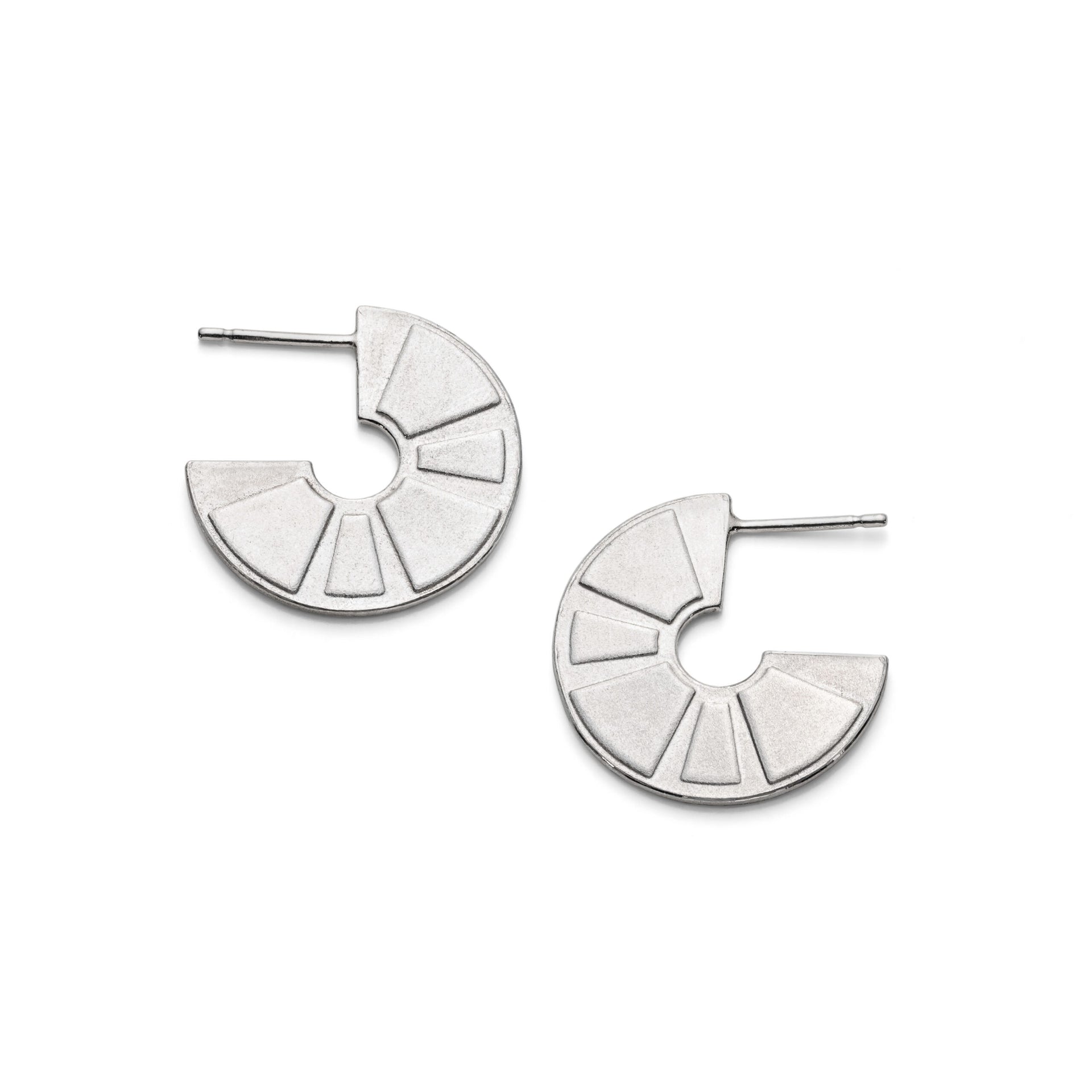 Part of Kathleens Keepers Collection that takes inspiration from Plymouth’s Smeatons Tower. Created from sterling silver, the Huggie earrings are designed to do just that. They hug close to the earlobe, making them easy and comfortable to wear. There is a raised texture to them and the design is complemented with a soft satin finish and a burnished, highlighted edge, that captures the light beautifully.