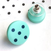 Funky mismatch earrings with striking turquoise and blue spots and are lightweight with a smooth matt finish.