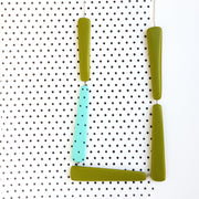 Each resin rectangle has a matt finish, and the turquoise rectangle has deep blue dots inlaid on one side and deep blue stripes inlaid on the reverse, Each rectangle is attached to silver chain.