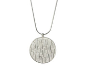 The Flotsam pendant has been created from tiny pieces of silver being soldered to a plain disk and then textured.