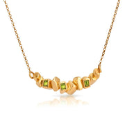 Created in sterling silver with 18ct gold vermeil, this pebble necklace is eye-catching yet easy to wear, set with three peridots. Pair it with the peridot and pearl cluster earrings.
