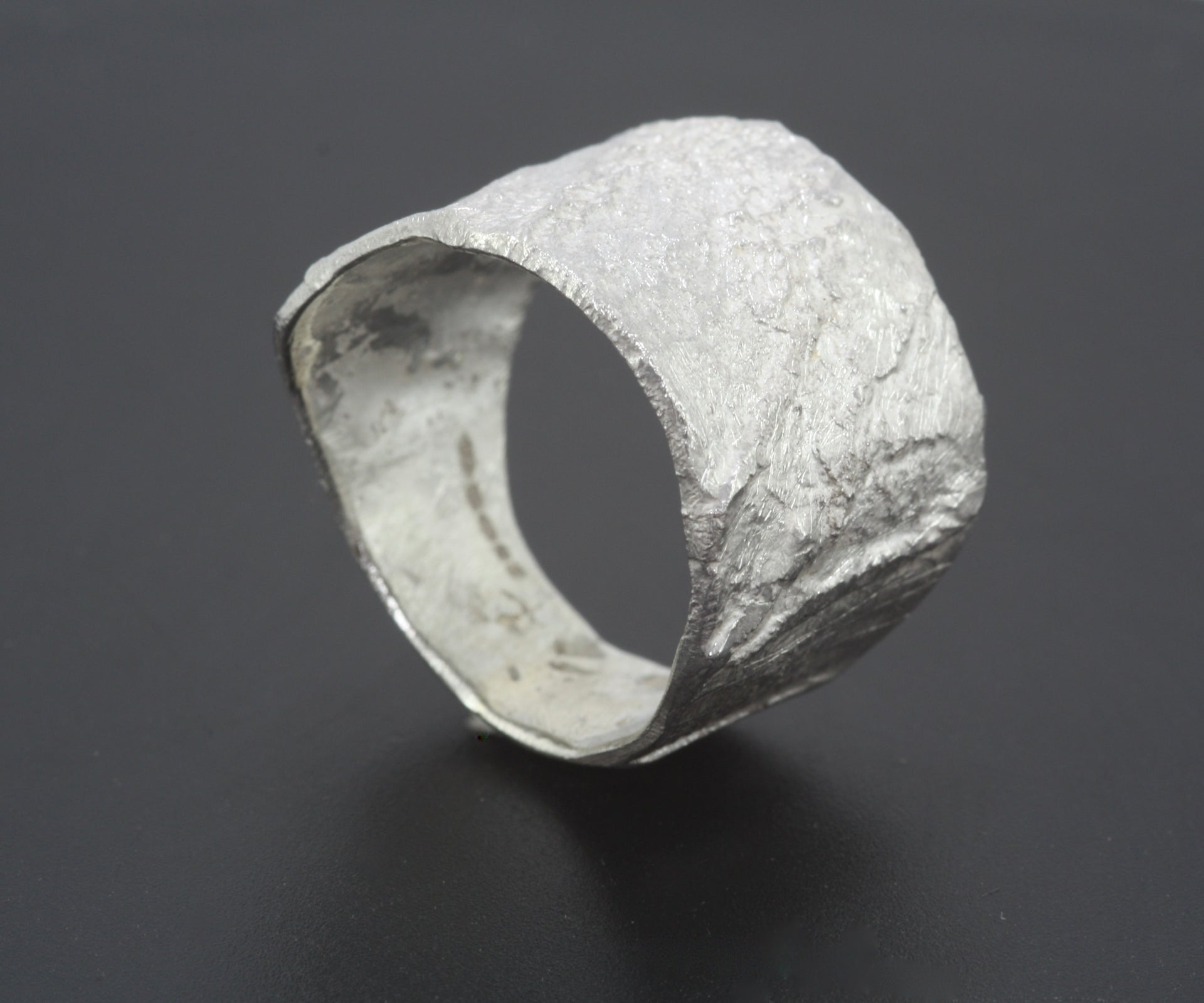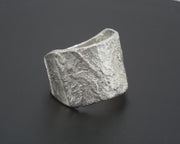 A beautifully textured wide chunky ring which is pared down on the underside for ease and is very comfortable to wear.