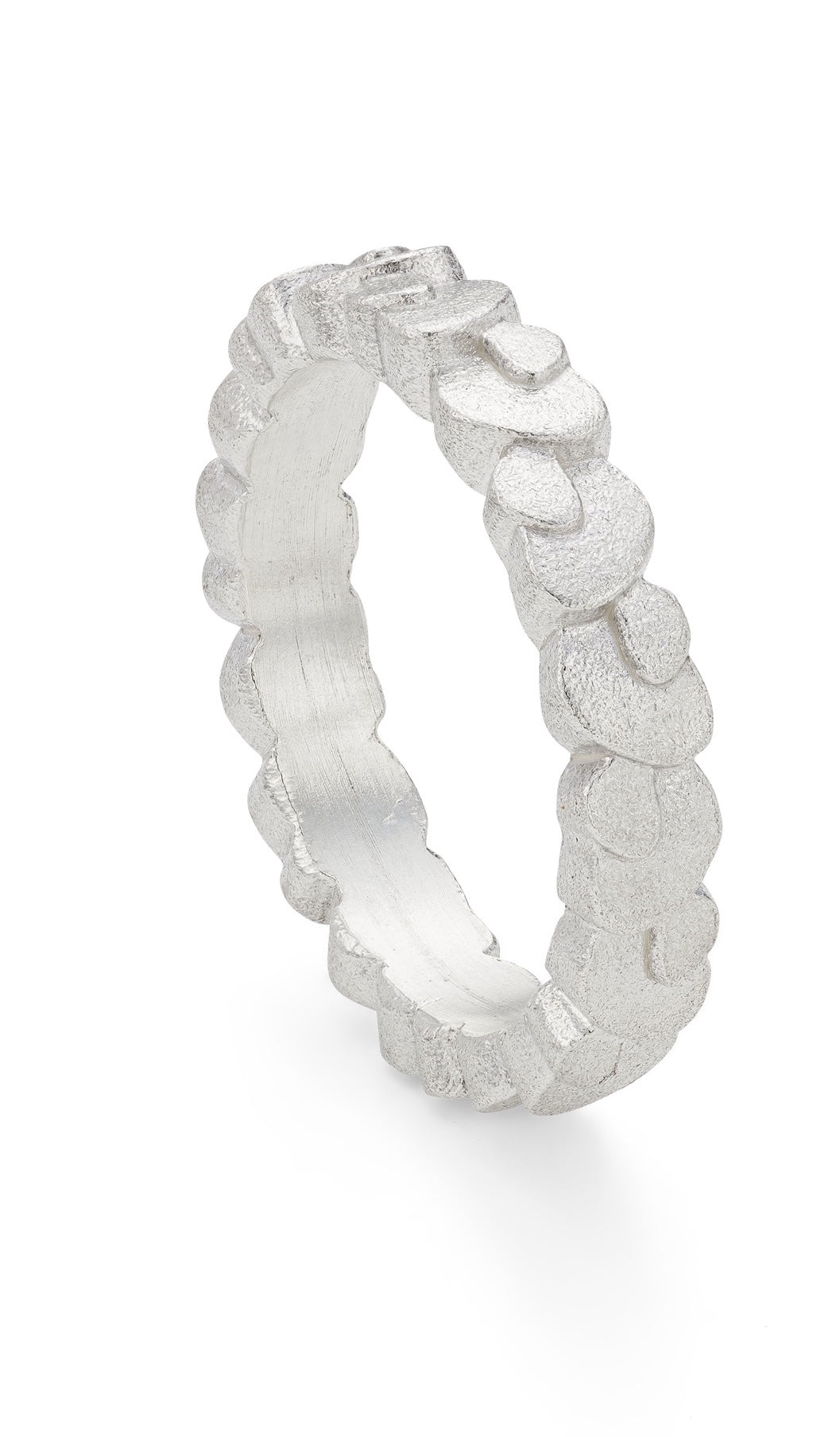 This lovely ring has been hand cast in wax before casting in silver, finishing and being given a frosted finish. Very pretty little ring.
