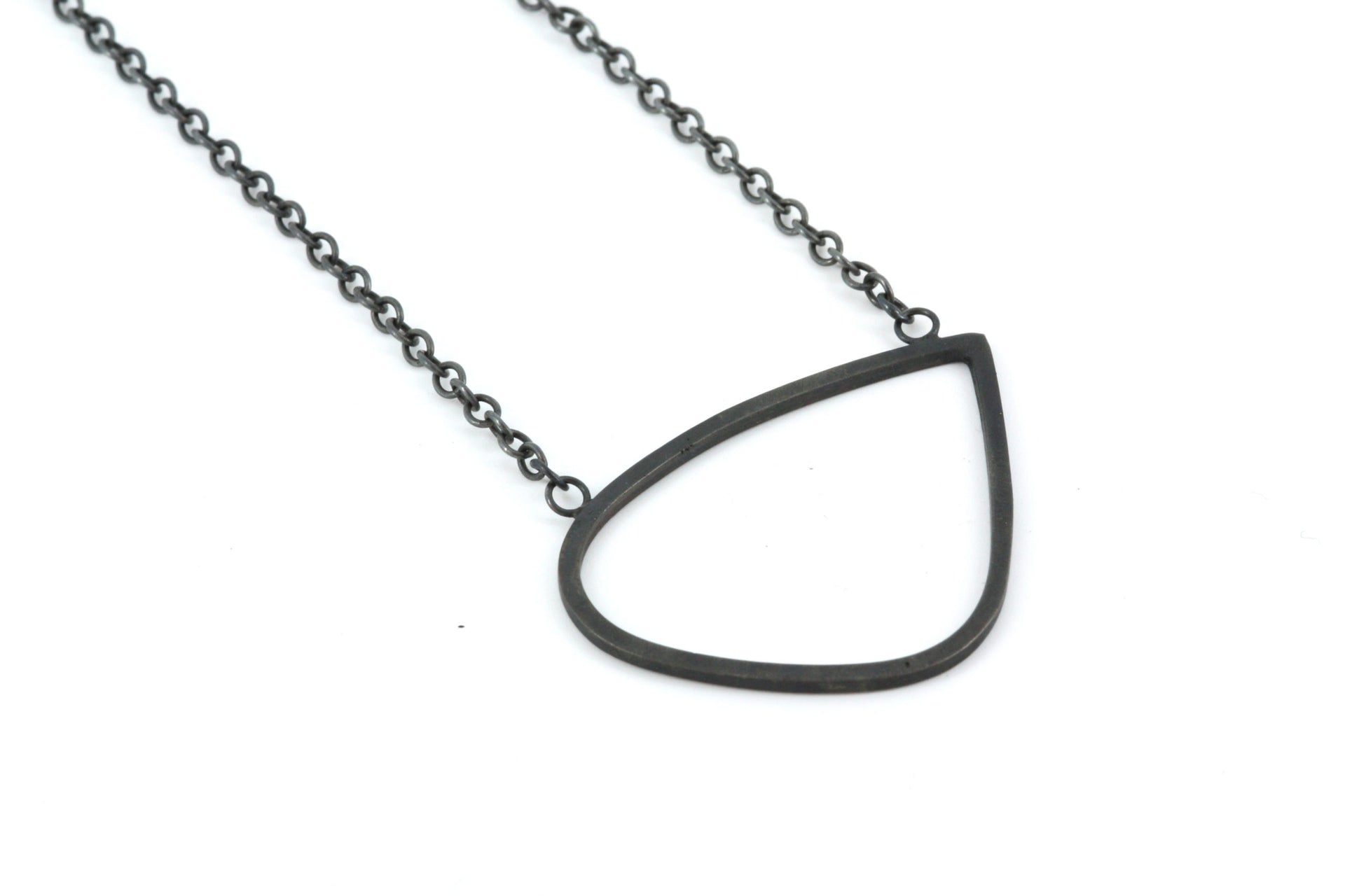 Simple pendant made from sterling silver with an oxidised finish. Hung on an 18" trace chain.